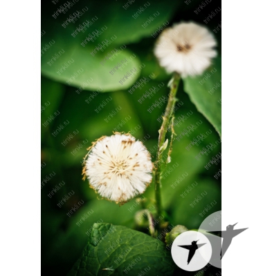 Купить фотографию с одуванчиком. Маленький цветок, который совсем недавно «опылился», уже готов отправиться в путь – ветер потихоньку отбирает у него летающие семена. На снимке видно два одуванчика, но только один находится в фокусе. Задний план – зеленая листва, которая расплывается по снимку и делает его гармоничным. Хорошее качество самой фотографии – видно все мелкие детали.