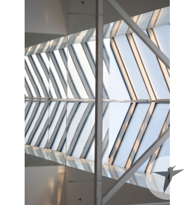 Скачать фотографию с необычными окнами. Пластиковые окна расположены под углом друг к другу, образуя практически прямоугольный треугольник. Яркий солнечный свет проникает в помещение и отражается от зеркальной стены, создавая уникальный узор – окна кажутся бесконечными. Очень интересная фотография – она понравится любителям архитектуры и необычного внутреннего убранства.