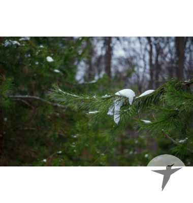 Купить фото сосновой ветки. На фото снег лежит на ветке сосны. Изображение может быть использовано для оформления постов интернет-СМИ, блогов и других интернет-страниц.