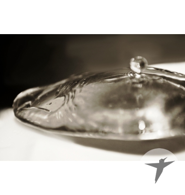 На черно-белом фото изображена живая водяная масса, в которую сверху падает капля.