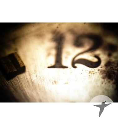 Фото снятое с фильтрами сепии изображает часть старинных часов стрелка на которых приближается к двенадцати.