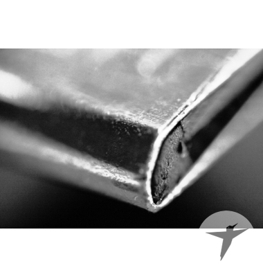На черно-белом фото изображен угол поверхности покрытой металлом, под которым находится дерево.